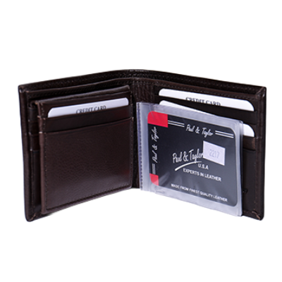 - Interior has 15 card slots, 1 ID window, two slip pockets, two full-length money slots, and one removable window insert that holds up to 3 cards
